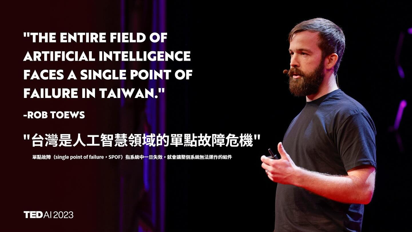這也是為什麼台積電如此重要的原因,引用一張 Rob Toews 在 TED 上的演講,fOx 製作的圖片: