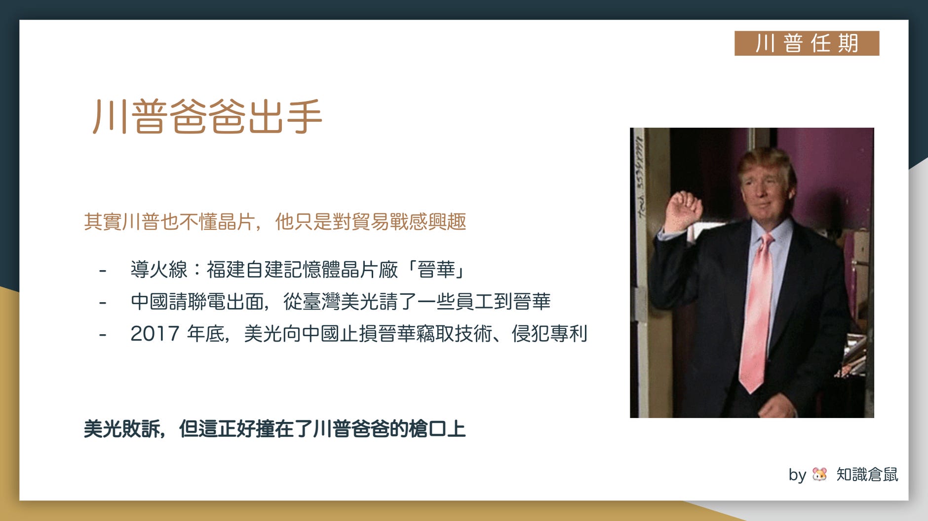 川普決定,用之前對付中興的方法對付中國,禁止晉華購買製造晶片的美國設備。