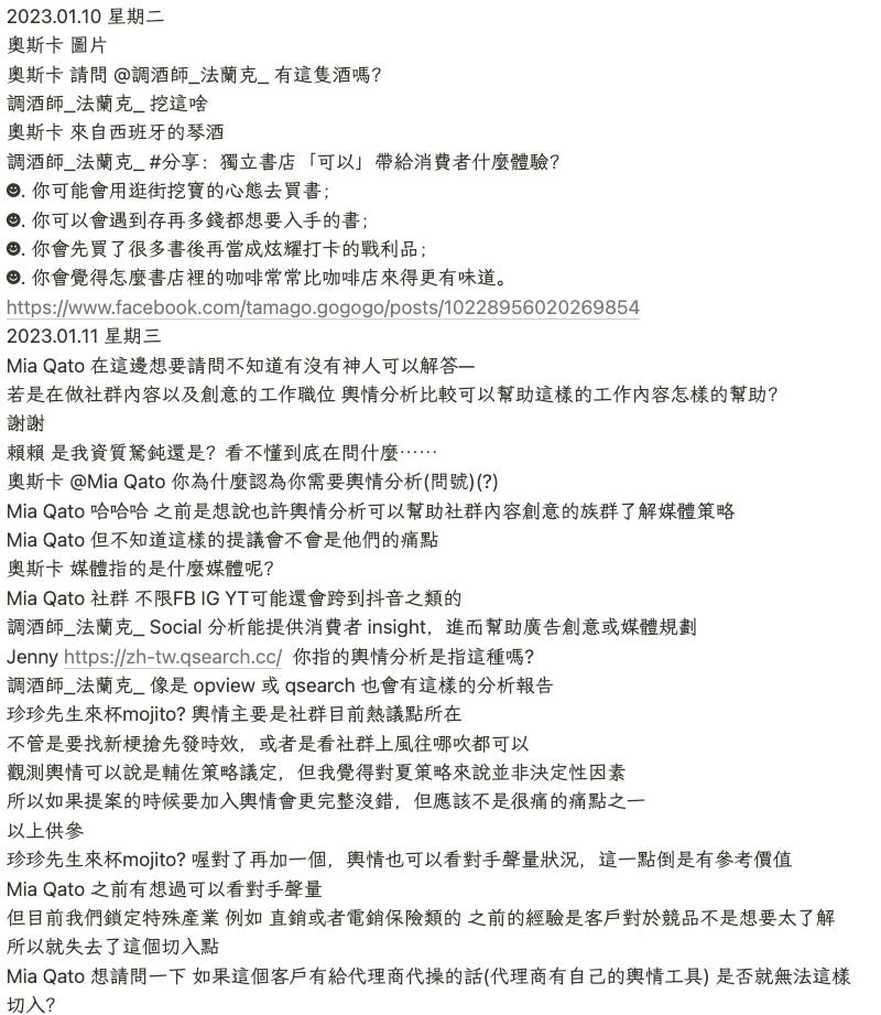 整理結果如下:2023.01 輿情工具與專業分析:如何找出有價值的資訊